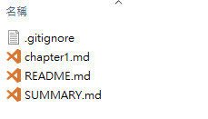 README.md 和 SUMMARY.md 是兩個必備的Markdown文件,README.md 是對書籍的簡單介紹,而SUMMARY.md 是目錄結構